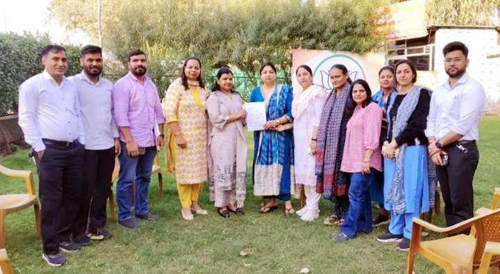 भाजपा महिला प्रदेश अध्यक्ष को तबादला नीति बारे नर्सिंग ऑफिसर्स ने सौंपा मांग पत्र।