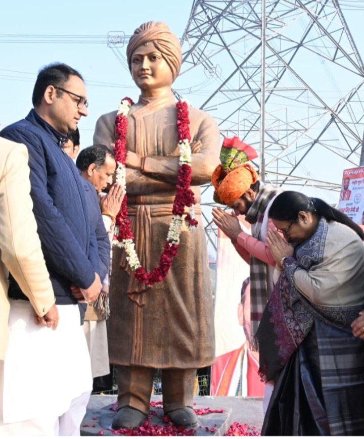गुरुग्राम, संवाददाता : मुख्यमंत्री नायब सिंह सैनी ने स्वामी विवेकानंद जी की 163वीं जयंती के अवसर पर राष्ट्रीय युवा दिवस के उपलक्ष्य में गुरुग्राम स्थित एसपीआर रोड पर स्थापित उनकी प्रतिमा पर पुष्प अर्पित कर उन्हें नमन किया। इस अवसर पर मुख्यमंत्री ने स्वामी विवेकानंद के विचारों को युवाओं के लिए प्रेरणास्रोत बताते हुए उनके आदर्शों को जीवन में अपनाने का आह्वान किया।